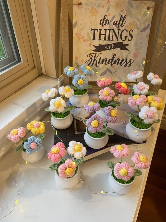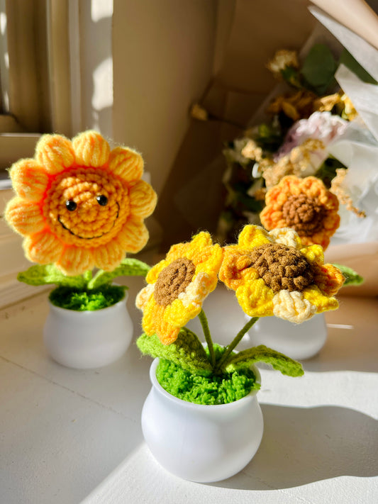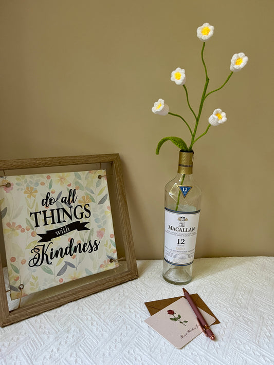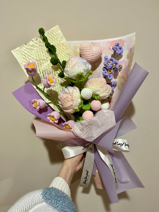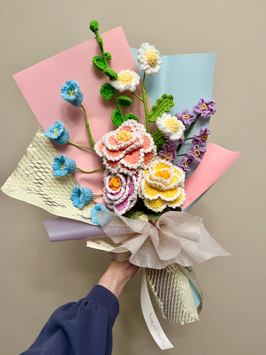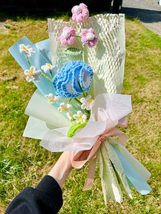 You can choose from the single crochet flowers and leaves to build a bouquet, a real unique one. Or contact us to customize bouquets with your stories and moments.