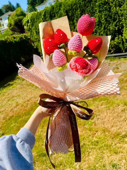 7 Stems Strawberries & Rose Bouquet with package (without the tulip)
