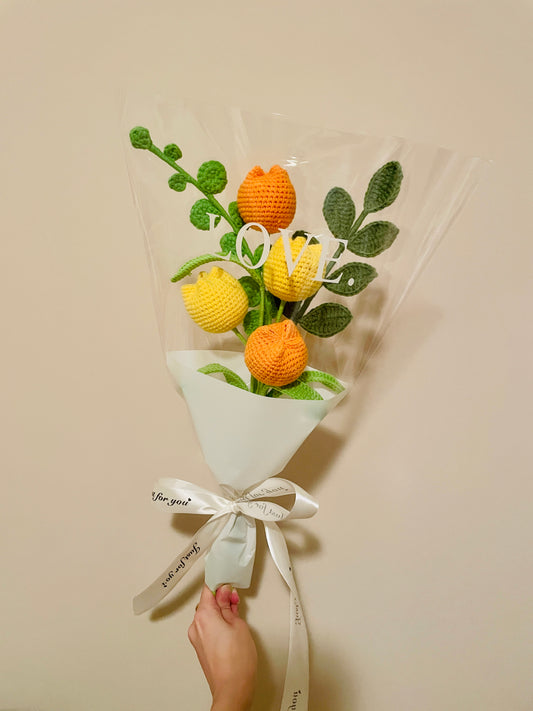 4 Stems Yellow & Orange Tulips Bouquet with package