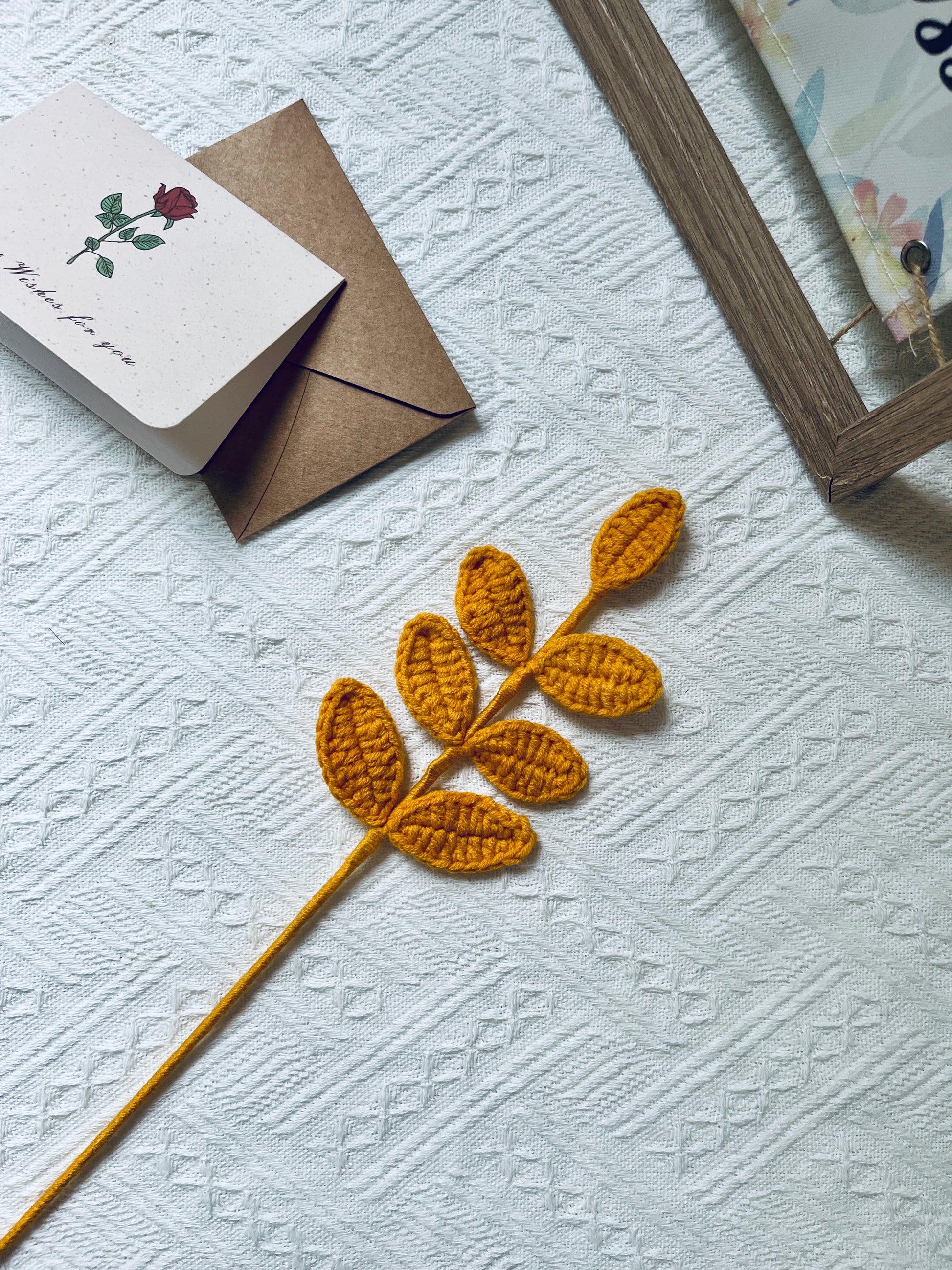 The crochet Olive Leaf can be a delightful addition to a flower bouquet