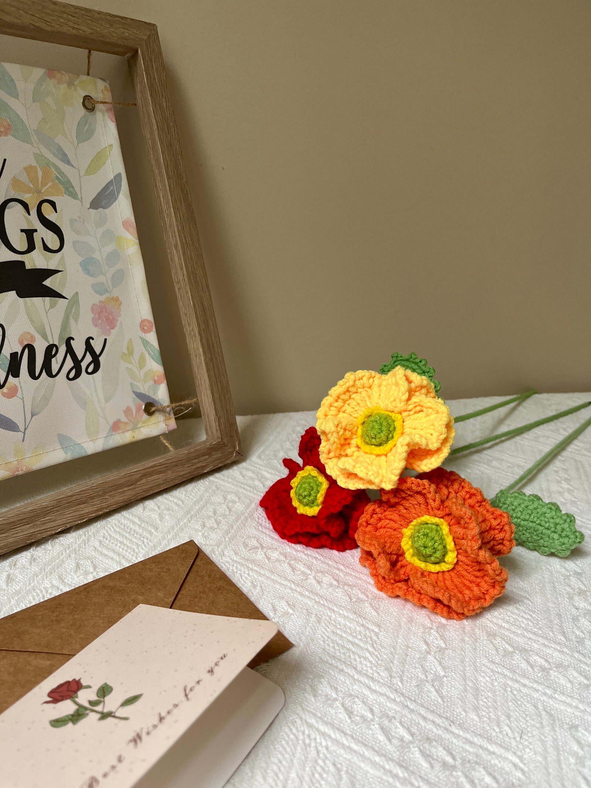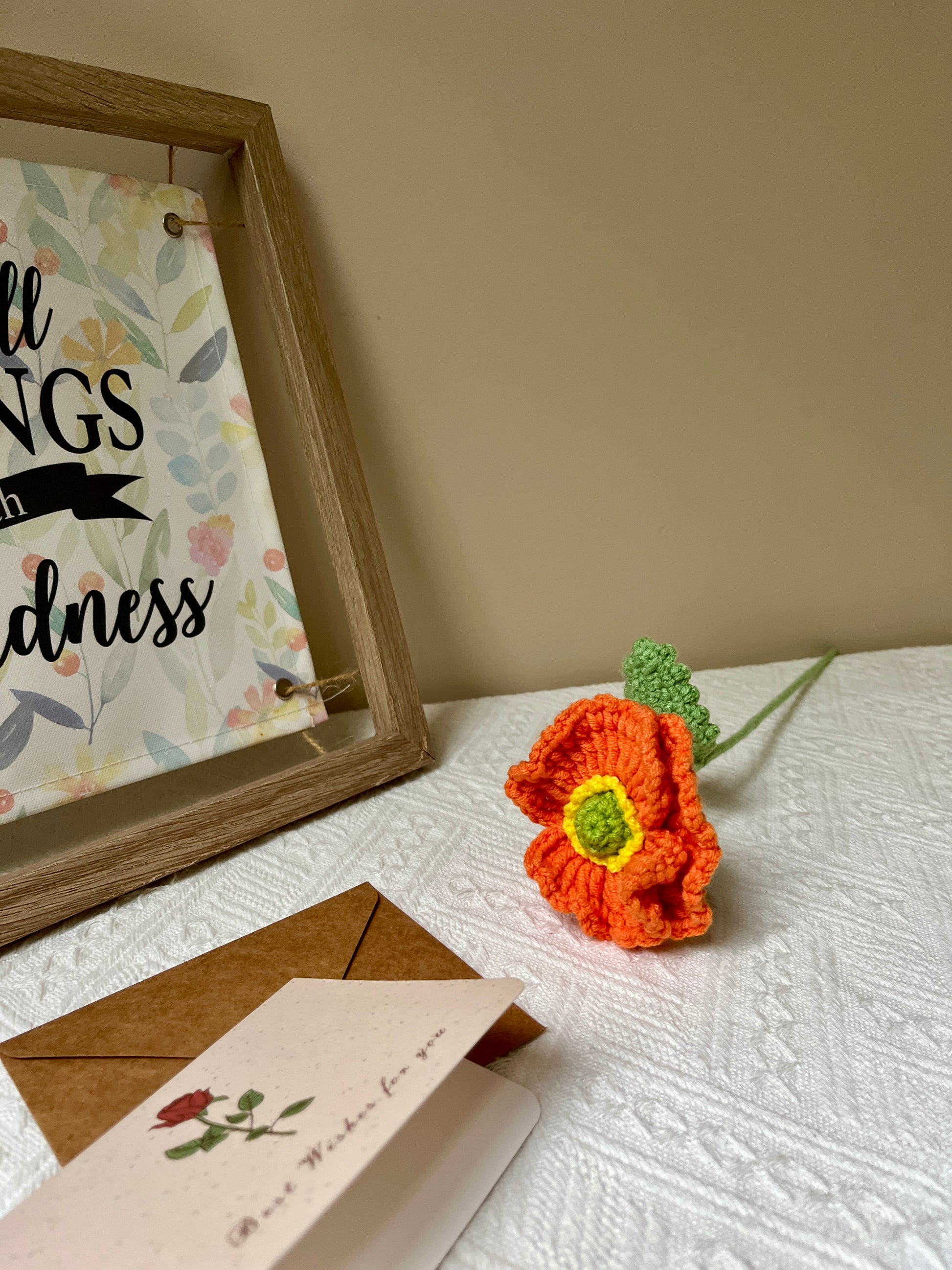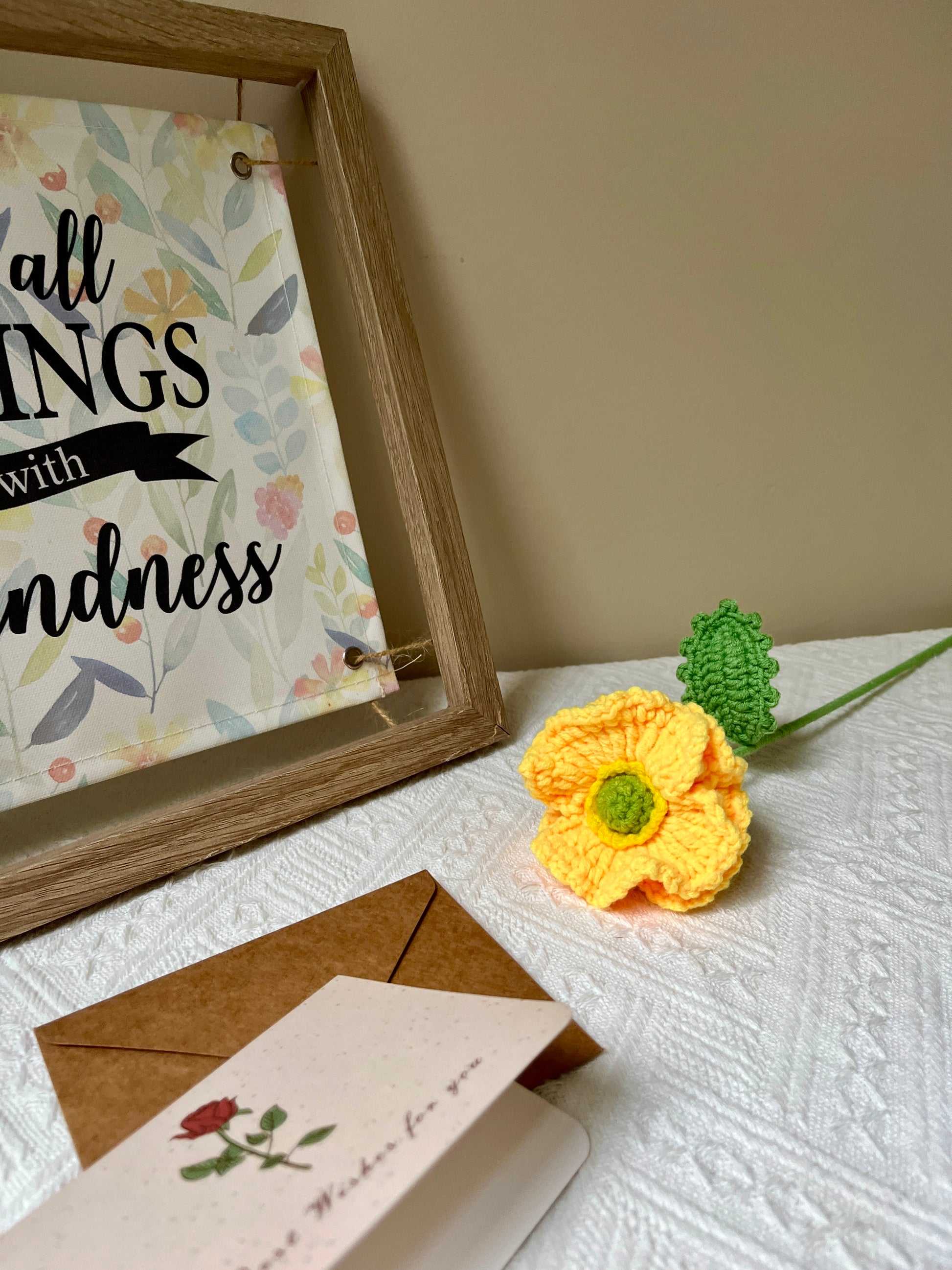 Experience the unique allure of our Crochet Rose, an exquisite creation with a stem-inspired design. Each rose is crafted with great care, highlighting the delicate artistry of crochet and capturing the beauty of nature in every stitch. Whether used to adorn your home or given as a thoughtful gift, this single-stem arrangement embodies elegant simplicity and enduring craftsmanship.