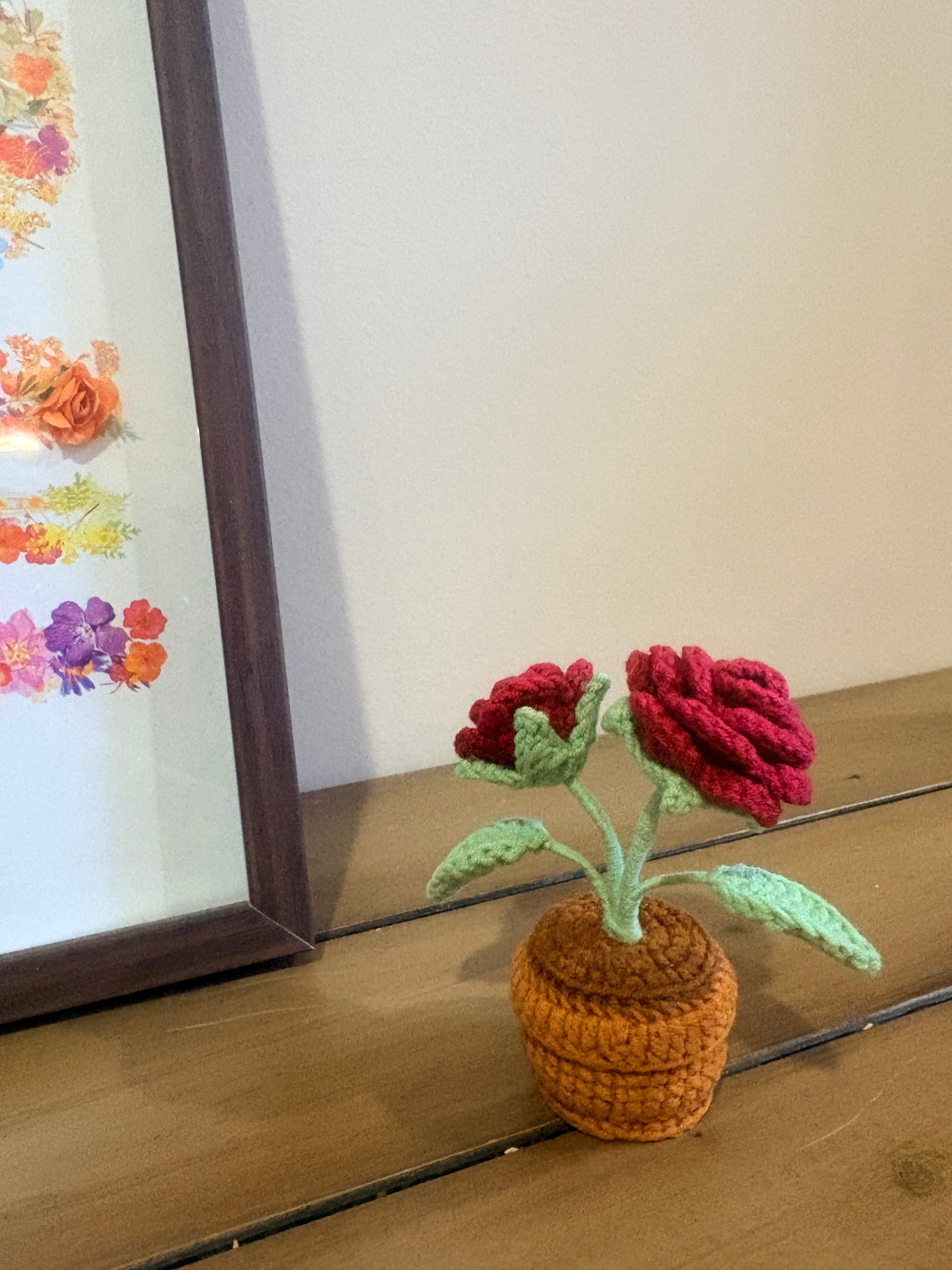 Discover the enchantment of our Crochet Flower in the Pot collection. Each delicately crafted blossom adds a hint of timeless sophistication to any room, effortlessly bringing the outdoors inside. Ideal for presents or adding to your home design, this collection blooms eternally, capturing the essence of everlasting spring.